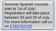 The schedule during summer for some people becomes more relaxed and for others more intensive. If you own a language center inform parents and students with SMS, for summer sections and the registration dates. If you own a gym send your members special SMS offers for summer subscription!